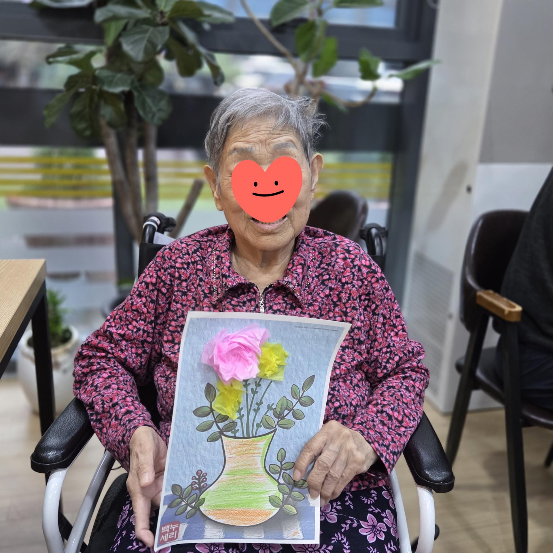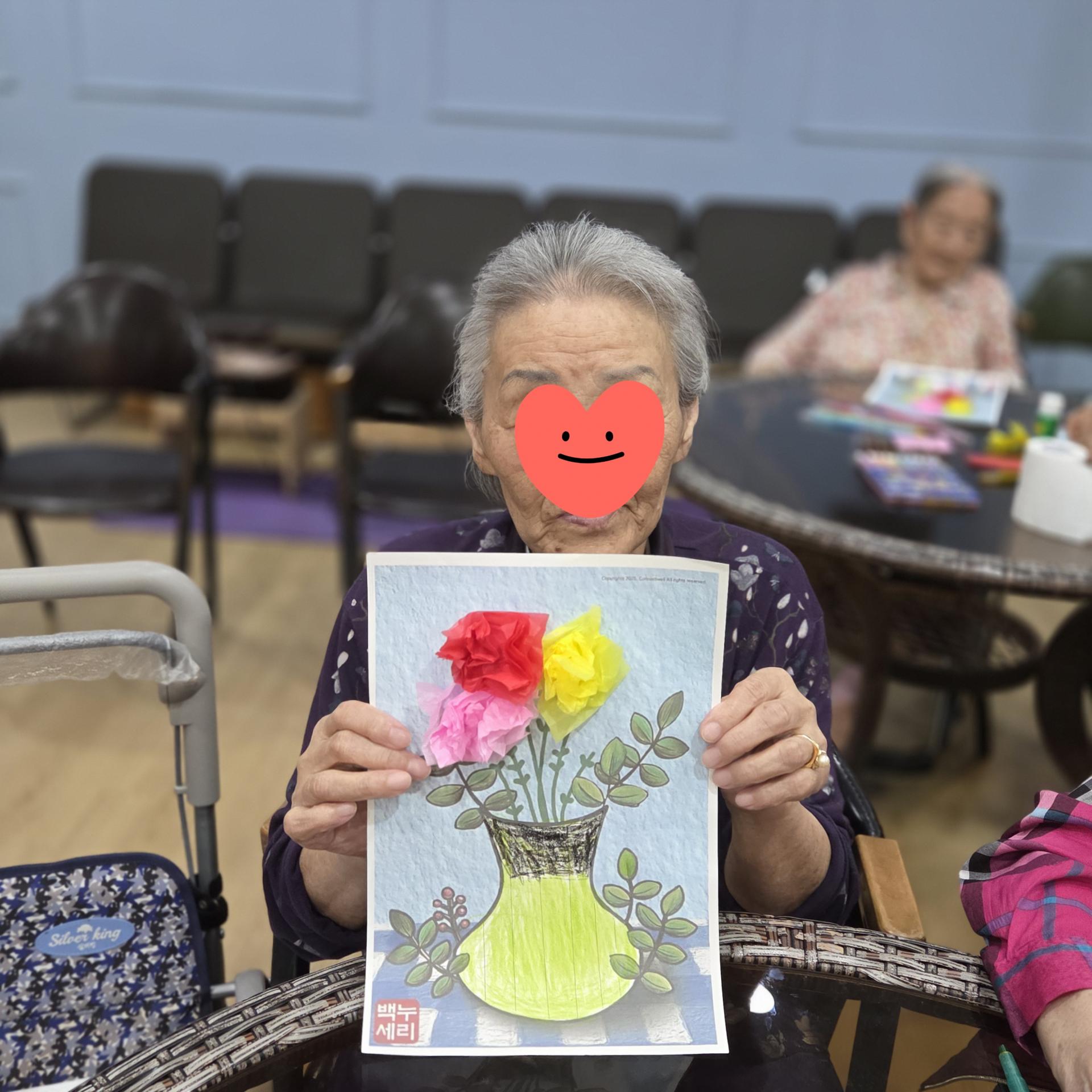 오늘 저희 요양원에서는 어르신들과 함께 ‘아름다운 꽃병 색칠하기’ 미술 프로그램을 진행했습니다.